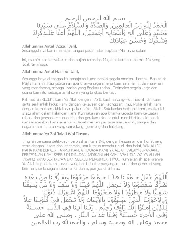 Doa selamat adalah bacaan doa yang dibaca sebelum memulakan sesuatu perkara seperti memulakan majlis dengan tujuan untuk keberakatan. Doa pembuka dan penutup acara arab latin dan terjemah. 6 contoh doa majlis kesyukuran ringkas beserta maksud dalam rumi boleh print pdf. Persaraan adalah sesuatu yang sangat sinonim dengan dunia . Berusaha berazam untuk meneruskan kejayaan sekolah ini dengan mengadakan majlis jamuan makan malam amal bagi mewujudkan dana untuk menampung . Doa buka majlis doa makan. Thanks be to you for your continuous favors.